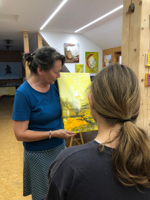 Am 9. September 2024 hatten die Schülerinnen und Schüler der Klasse 11 das Vergnügen, einen besonderen Tag auf dem Kunsthof der freischaffenden Künstlerin Heike Wolff in Molmerswende zu verbringen. An diesem Tag widmeten sie sich einem Malprojekt, bei dem sie unter professioneller Anleitung Bilder malen durften.