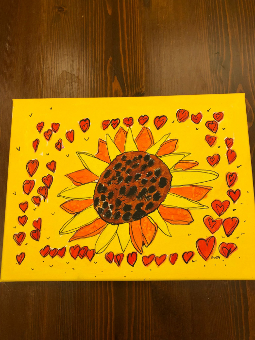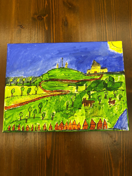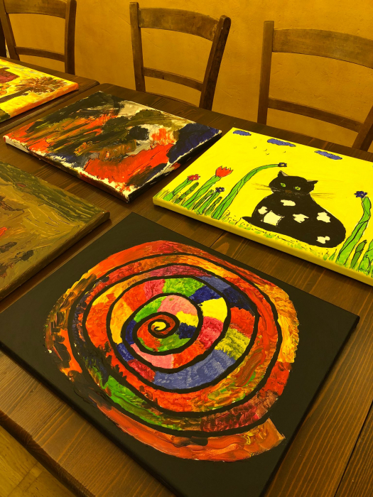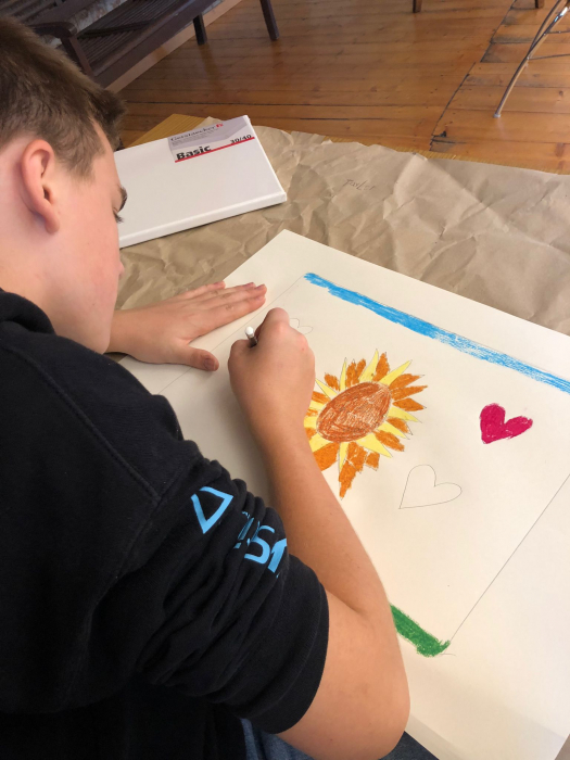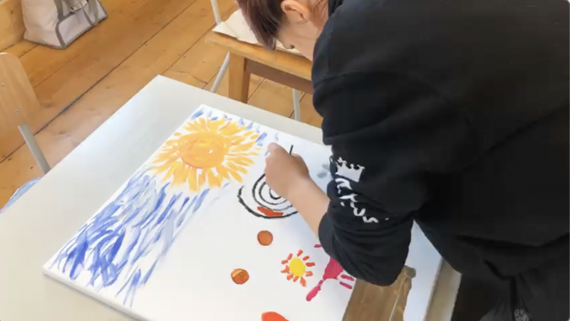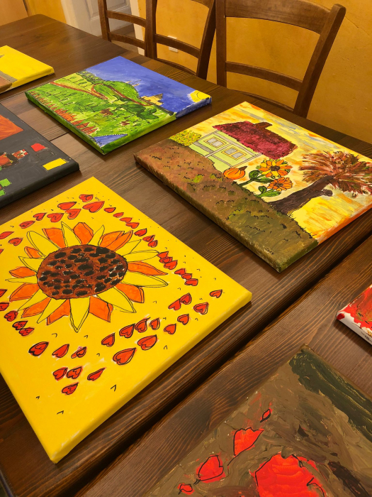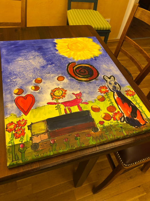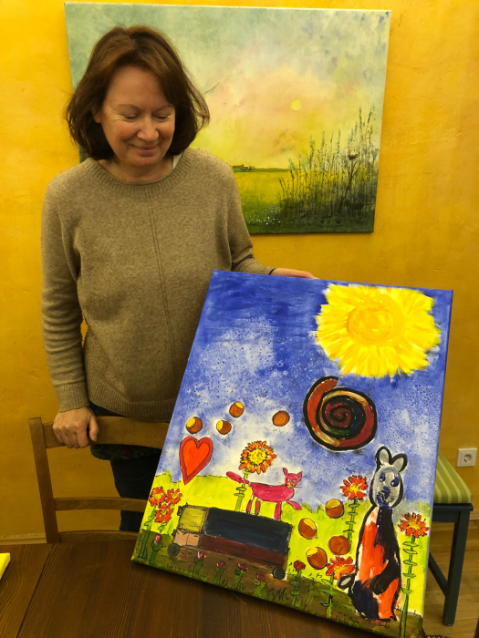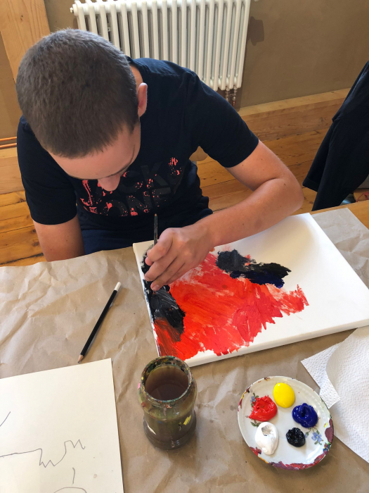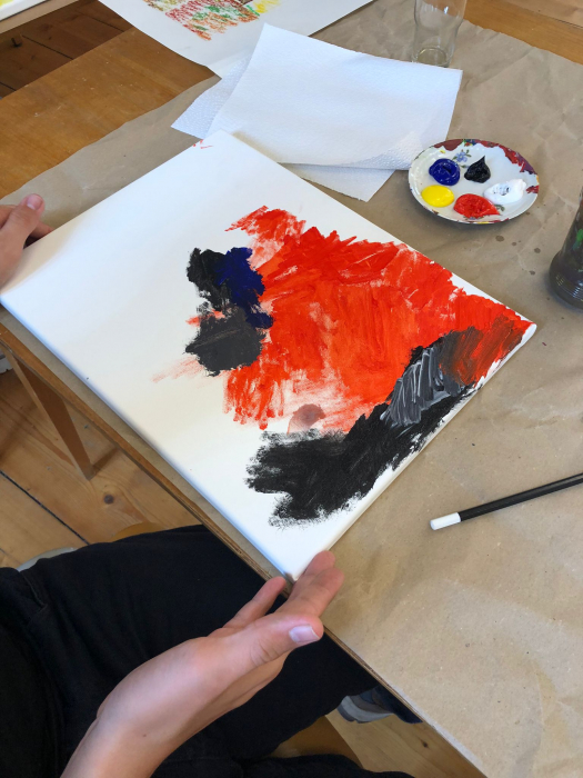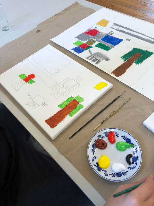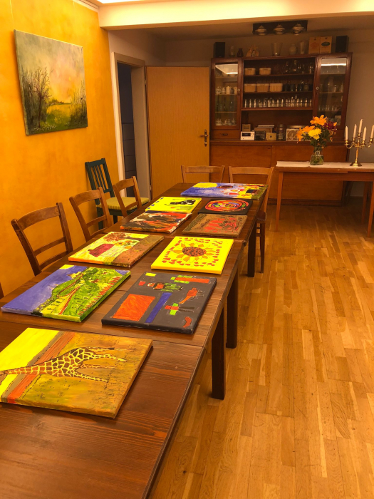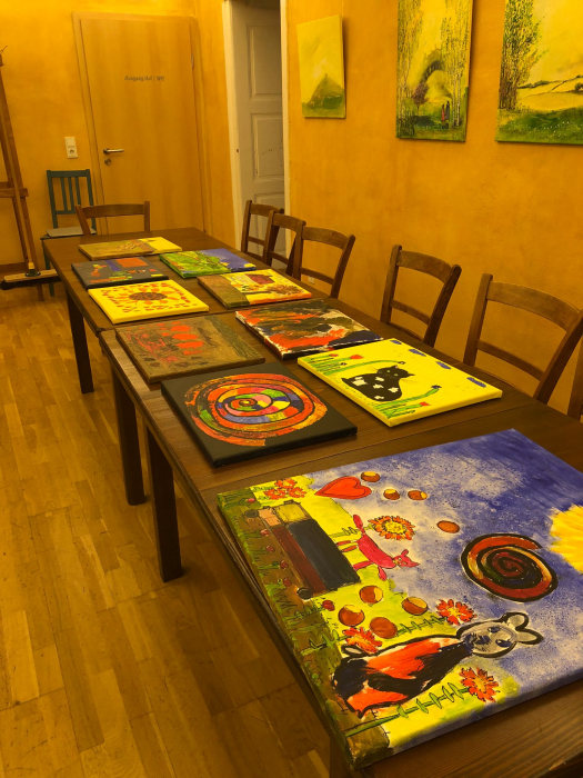 Anschließend wurden Leinwände gespannt, und auf diesen zeichneten die Teilnehmenden ihre Motive mit Bleistift auf einen Keilrahmen. Dann begann das Malen mit Künstler-Acrylfarben, wobei alle ihrer Fantasie freien Lauf lassen konnten.