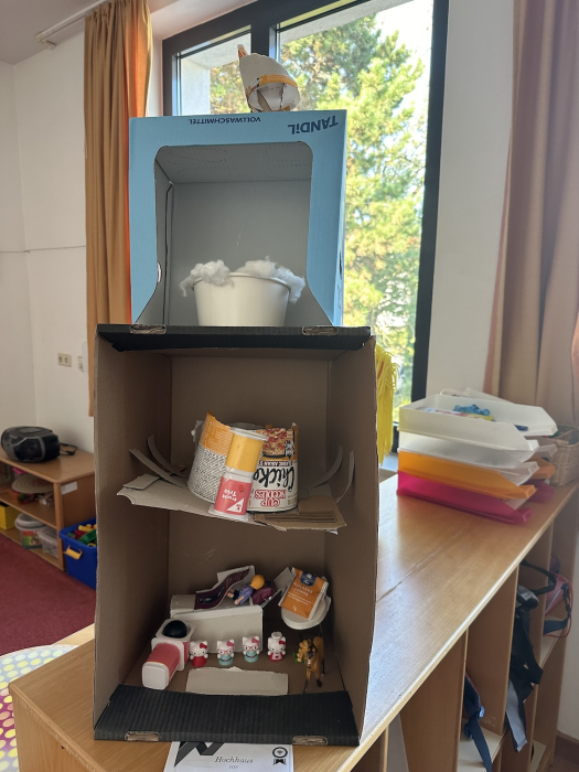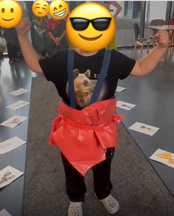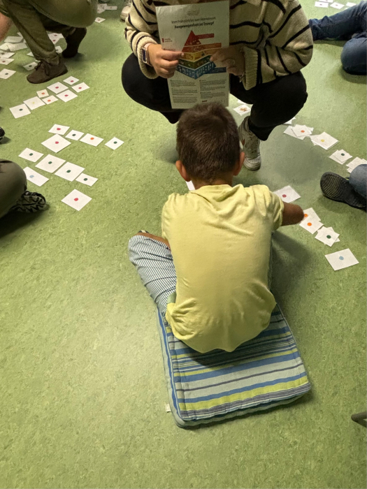 In einem Spiel wurde ihnen der Anteil von Mikroplastik visuell verdeutlicht, den Einzeller aufnehmen, die dann Nahrung von kleinen Fischen sind, die wiederum von größeren und diese dann von riesigen Fischen gefressen werden und so im Magen der Fische landen, die wir essen.