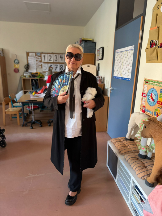 Der Star des Tages war jedoch Therapiehund E-Jay, der gemeinsam mit einer Gastklasse aus der Förderschule Wolmirsleben bei uns weilte.