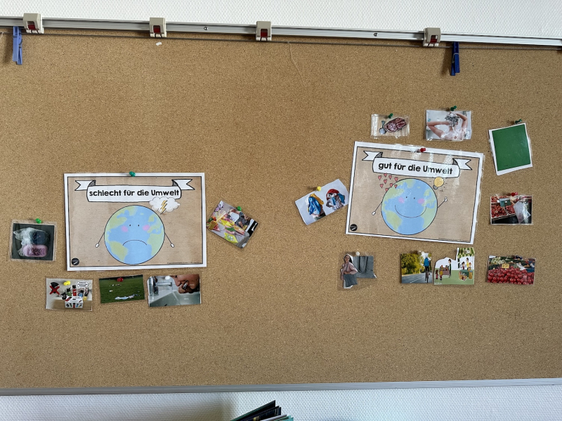 Außerdem beschäftigten sich die Schüler in der Nachhaltigkeitswoche mit den Themen Mülltrennung, Recycling und Mikroplastik. Sie sortierten Abfall und gingen auf virtuelle Reise in Recyclinganlagen für Glas und Kunststoff.