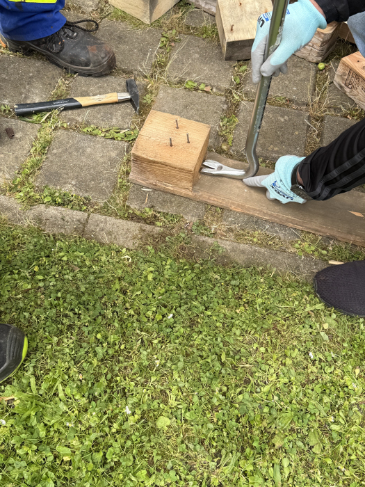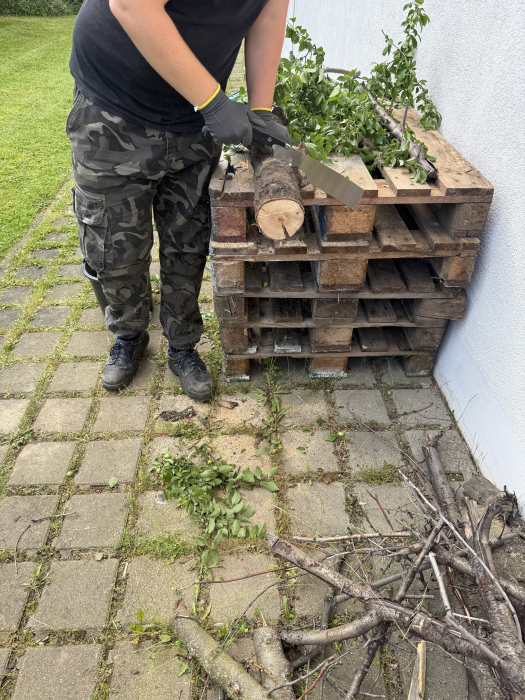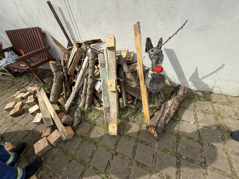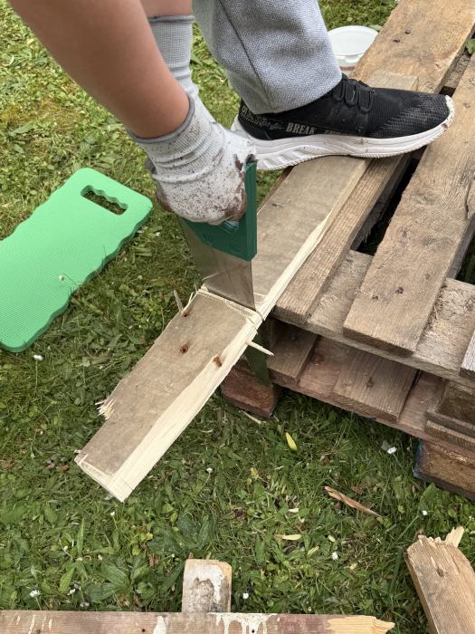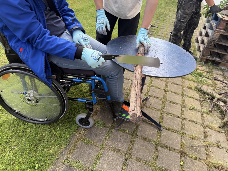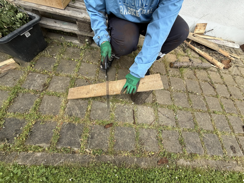 Neben den handwerklichen Arbeiten gab es viele zusätzliche Aufgaben: Holz wurde zugesägt, Äste für die Hochbeete vorbereitet und verschiedene Materialien transportiert.