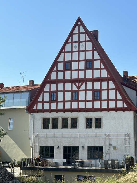 Außerdem zeigte uns Frau Schwerke die Häuser, die der Architekt und Stadtplaner Hans Heckner entworfen hatte und bauen ließ. Sie führte uns durch Straßen, in denen früher gehandelt und gefeilscht wurde und konnte uns immer wieder mit lustigen aber auch schaurigen Details fesseln.