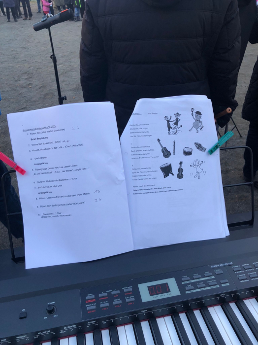 Das Wetter hätte winterlicher nicht sein können: kalt, klar und sonnig. Pünktlich um 15 Uhr eröffnete ein stimmungsvolles Chorprogramm den Adventsmarkt. Es erklangen weihnachtliche Lieder, Flötenstücke - sowohl solistisch als auch in Gruppen - und Gedichte, dargeboten mit viel Herz und Engagement. Eltern, Freunde, Bekannte sowie viele ehemalige Schülerinnen und Schüler mit ihren Familien waren der Einladung gefolgt und belohnten die Beiträge mit kräftigem Applaus. |