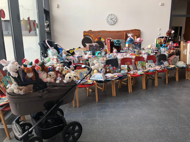 Besondere Freude kam auf, als der Weihnachtsmann höchstpersönlich vorbeischaute - im Gepäck viele kuschelige Plüschtiere, die bei den Kindern für strahlende Augen sorgten. Außerdem konnten große und kleine Gäste an einem Stand Buttons prägen und so kleine Andenken an den Nachmittag gestalten.