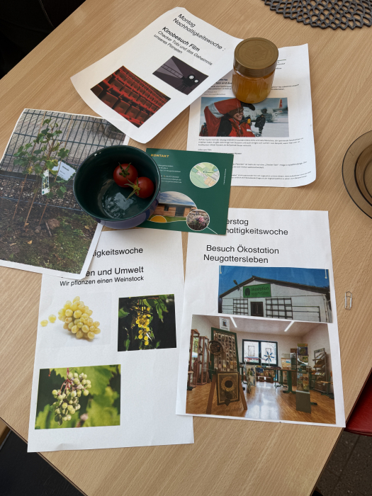 Auch in der Schule selbst gab es viele praktische Aktionen: So kochten einige Klassen Apfelmus und backten Apfelkuchen mit Äpfeln aus dem eigenen Schulgarten. Dort wurde außerdem von einer Klasse eine Weinrebe gepflanzt.